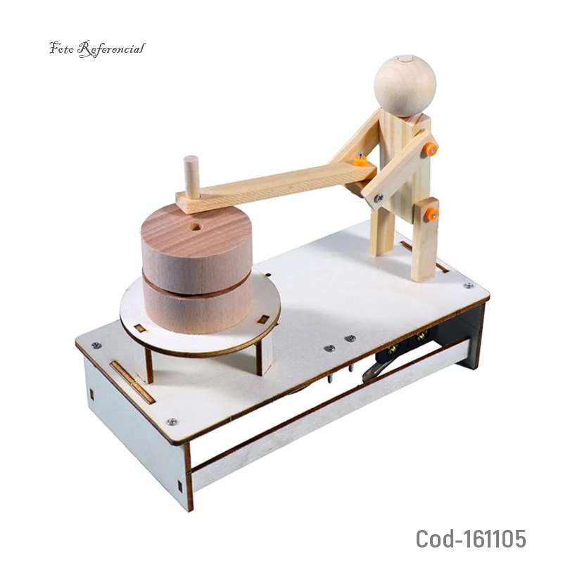 Proyectos Para Niños Armables, Proyecto para armar figura de trabajador con movimiento mecánico educativo, incluye piezas en madera, motor eléctrico y accesorios. Ideal para estudiantes.