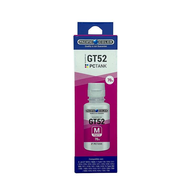 Botella de Tinta Para Hp GT52 Magenta Pacific, Suministros para impresora de la más alta calidad utilizando tecnología de última generación en remanufacturación al vacío. Tintas de la más alta pureza