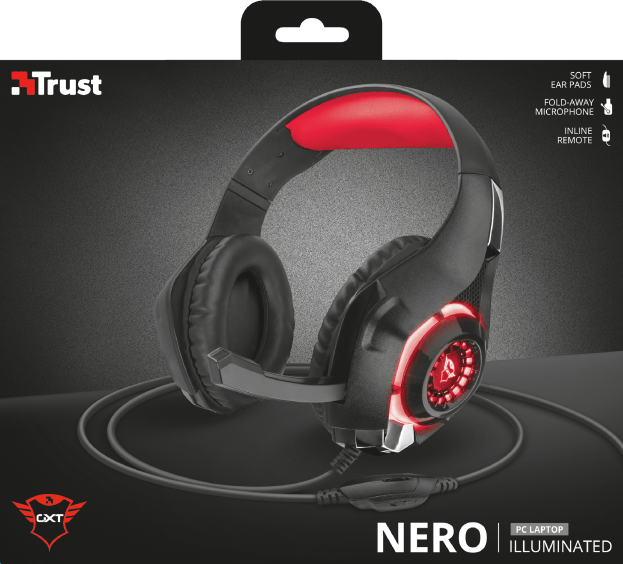 Audifonos gamer Nero, Auriculares circumaurales para juegos con micrófono ajustable y laterales con iluminación, Suaves y cómodas almohadillas para las orejas, Micrófono plegable y diadema ajustable, Mando a distancia integrado con control de volumen y silenciamiento del micrófono